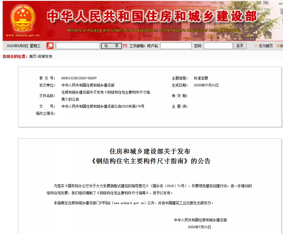 為落實《國務院辦公廳關于大力發(fā)展裝配式建筑的指導意見》、開展綠色建筑創(chuàng)建行動、進一步推動鋼結構住宅發(fā)展,住房和城鄉(xiāng)建設部組織編制了《鋼結構住宅主要構件尺寸指南》,并于日前印發(fā)。